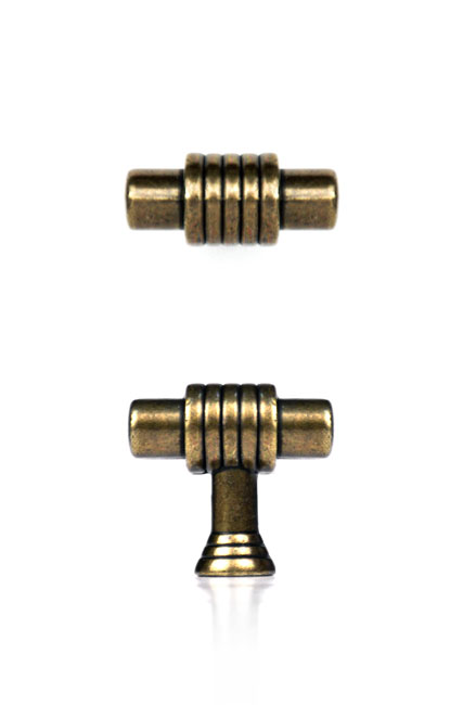 ידיות כפתור גליליות עם פיתוחים מעודנים בצורת T בסגנון קלאסי.